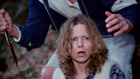 THE FINAL TERROR (1983) Unfairly criticized slasher/Deliverance hybrid about a group of twenty-something forest rangers who run up against a homicidal mountain man while on a weekend training excursion in the woods. Utilizing Oregon’s Redwood National Forest setting to its advantage, the movie creates a genuine feel of isolation, especially in the second half when the story shifts gears from a Friday the 13th wannabe to a survival-of-the-fittest adventure thriller. While mostly carbon copies from slashers past, the characters are sympathetic and smart, and the cast believable, especially a young Joe Pantoliano (The Sopranos) as a hotheaded mechanic who may be hiding a secret. Filmed in 1981, this was shelved for two years because of distribution problems and finally got a limited release in late ’83 thanks to rising stars Daryl Hannah and Rachel Ward. The Final Terror isn’t the best slasher you’ll ever see, but it’s far from the worst. B–