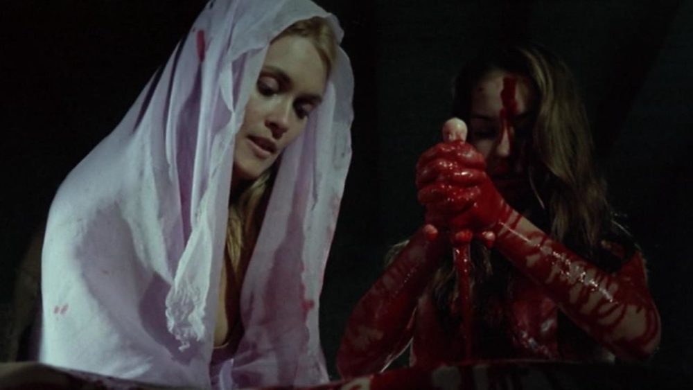 THE BLOOD-SPATTERED BRIDE (1972) Newlywed Susan (Maribel Martin) becomes increasingly tired of her brutish husband’s (Simón Andreu) lustful appetite while on their honeymoon at his family’s country estate. That is until Susan is seduced by a mysterious woman (Alexandra Bastedo) who apparently murdered her husband on her wedding night centuries earlier—and wishes for Susan to do the same. A film very much of its time, this is filled with New Age feminism and political subtext—a dream in which Susan cuts out her husband’s heart isn’t exactly subtle—although much of it is muddled in the flimsy screenplay, which is loosely based on the vampire tale Carmilla. Susan isn’t exactly sympathetic, and none of the other characters are worth caring for, including Susan’s husband who flip-flops between asshole and hero. Not nearly as exploitative as its title would suggest. A shame. C