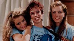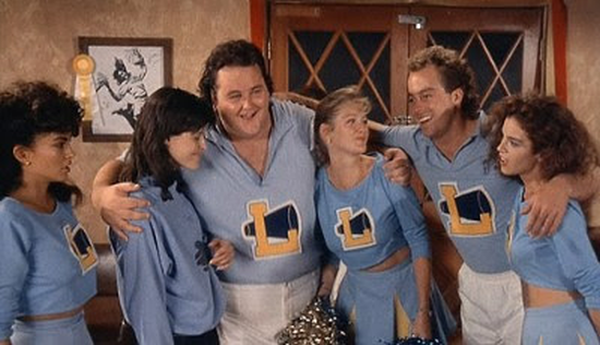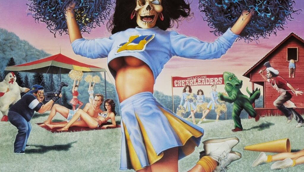 The story crescendos during the crowning of the Camp Queen when bodies start piling up, including amateur videographer, Timmy (Travis McKenna), whose disemboweling is recorded over his homemade porn. The major red herring is Brent, but the killer is actually Cory (Lucinda Dickey, Ninja III: The Domination), the dowdy team mascot who, in the final scene, frames Alison for the murders before donning a cheerleader uniform and breaking into a cheer, asking the audience to, “Give me a C-O-R-Y!”