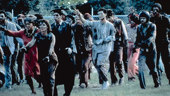 THE RETURN OF THE LIVING DEAD (1985) Taking all the rules of the Romero school of zombies and turning them on their heads, Return offers a wholly different take on the zombie movie by infusing its story with characters who’ve actually seen Night of the Living Dead—so when the dead crawl from their tombs, the survivors already know you gotta shoot ’em in the head. When an army-secured vat containing the remains of a corpse is accidentally opened by a couple of lunkheads, it releases a toxic green mist into the nearby cemetery, causing the neighborhood to overflow with the walking dead. And these zombies don’t just walk, but run and speak! Oh, and the whole “destroying the brain” thing doesn’t work in this universe. Written and directed by Dan O’Bannon, Return of the Living Dead is a film that’s pulsing with energy from beginning to end. It’s also extremely funny, and scary.