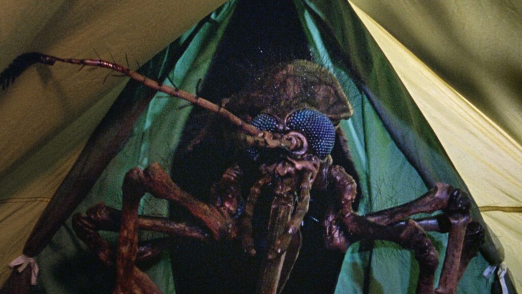MOSQUITO (1994) In an homage to 1953’s The War of the Worlds, Mosquito opens with the arrival of a crashed spaceship. As the door opens, a lifeless alien arms extends out, and a mosquito happens by and bites it. A short time later, the mosquito population has mutated into ginormous monsters, which waste no time in making a buffet out of the nearby state park residents. Various campers and forest rangers are impaled and sucked dry by the flying creatures, leaving a trail of desiccated bodies in their wake. It’s up to a pack of survivors—including Leatherface himself, Gunnar Hansen, as a God-fearing bank robber—to try and stop the giant bugs from taking over the world. The movie’s low-budget FX and gore are a welcome addition to the intentionally campy nature the filmmakers were obviously striving for, and as a result, Mosquito works fairly well. The pacing (which is at times relentless), a good cast, and an overall sense of enjoyment also help to make Mosquito a fun little Michigan-shot monster movie. Don’t miss the scene where Hansen breaks out a chainsaw found in an abandoned house: “I haven’t handled one of these in 20 years.” B