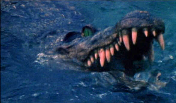 KILLER CROCODILE (1989) Fulvia Film, the Italian production company that gave us such classics as Escape from the Bronx and Zombie Holocaust, is responsible for this cardboard Jaws rip-off, which despite its low-tech awkwardness is quite fun. A small group of nature activists combing a large tropical riverbed for radioactive material comes face-to-face with a giant crocodile made unnaturally aggressive from toxic waste. The poisonous chemicals are the result of illegal dumping by a local company, who’s got the town’s bigwig judge in their pocket. When a little girl is almost eaten alive—her father is snatched up by the croc instead—salty game hunter Ennio Girolami is called into action to kill the reptile. The screenplay tries to update its nature-gone-crazy plot for the times by having the protagonists being more environmentally conscious and wanting to protect the crocodile in its natural habitat, but the characters are so idiotic (made worse by stiff acting and bad dubbing) you end up rooting for the croc. In a little bit of plot convenience, the judge and his cronies are devoured by the crocodile before the creature is blown to bits by activist Anthony Crenna. The plastic special effects and exaggerated action scenes lend the film a genuinely cheesy B-movie charm, and you find yourself in more ways than one enjoying it all. Filmed back-to-back with the inevitable Killer Crocodile 2. B–