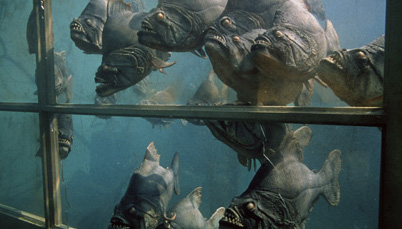 PIRANHA (1978) Intrepid skiptracer Maggie (Heather Menzies), along with mountain hermit, Paul (Bradford Dillman), stumble upon scientist, Dr. Hoak’s (Kevin McCarthy), hideaway lab while searching for missing teens and accidentally release a school of genetically-altered piranha into the nearby river. The blood-hungry fish were part of a disbanded government weapons experiment for Vietnam, which Dr. Hoak was secretly continuing after the war ended. The super-intelligent piranha eventually reach Lost River Lake, where a nearby summer camp and holiday resort make for an abundance of fleshy treats for the toothy terrors. After several patrons are turned into fish food, the army is called in—only to cover up the deaths and save face. A Jaws rip-off that’s actually good, Piranha doesn’t split hairs and presents its story in a tongue-in-cheek manner, which pays off wonderfully with a balanced mix of laughs and suspense. Actor/filmmaker Paul Bartel steals it as a drill sergeant-like camp counselor who sacrifices his flesh to save some kids from a piranha attack. Funny bit: when told about the situation, greedy resort owner Dick Miller asks, “What about the piranhas?” To which his assistant replies: “They’re eating the guests.” B+