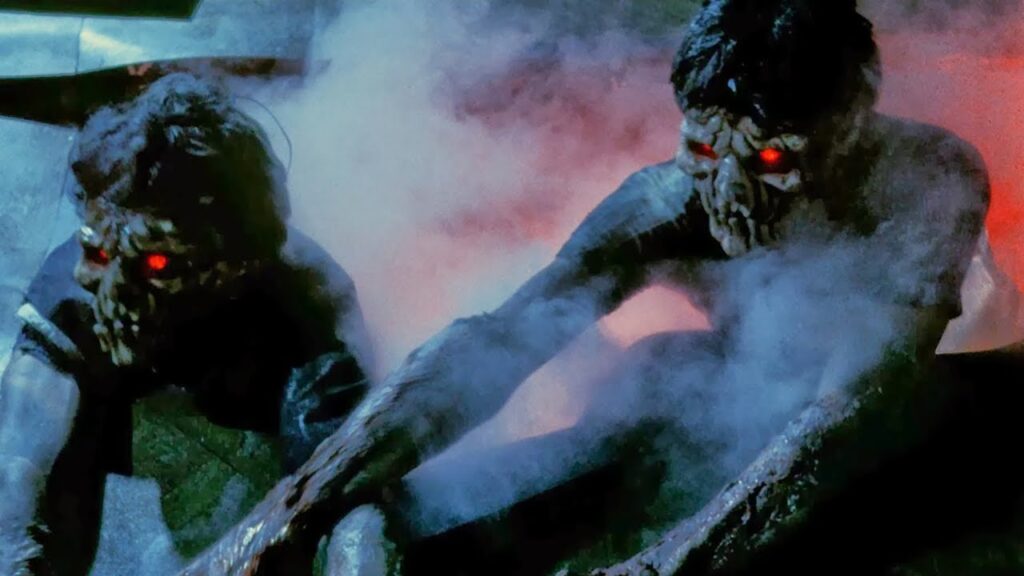 NIGHT TRAIN TO TERROR (1985) A scattershot anthology that’s actually comprised of scenes stitched together from several unfinished feature-length horror films. While aboard a train heading towards destruction, God and Satan discuss the fate of three individuals, representing three tales of murder, greed, and other distasteful acts of sin. The first vignette features a drunkard (John Phillip Law) committed to a mental hospital, which is actually a front for a business trafficking human organs. The second story is about a struggling musician (Merideth Haze) who joins a secret society called the Death Club that subjects its members to weird experiments, at which one member is randomly killed. In the final segment, a medical doctor (Faith Clift) stumbles upon a several-hundred-years-old plot involving the immortal henchman of Satan. A bizarre hodgepodge of ideas, Night Train to Terror is often too brash and ridiculous to be taken seriously. Yet at the same time, it’s fairly inventive and fun, creating a rough but enjoyable experience for the adventurous viewer. If you expect anything more out of this offbeat cult fiasco, you’re in for a world of hurt. B–