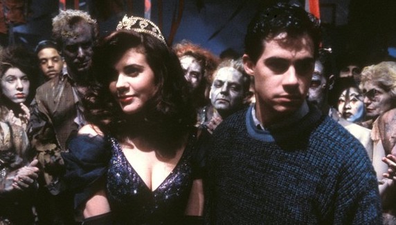 PROM NIGHT III: THE LAST KISS (1990) Since her reign of terror in Prom Night II, Prom Queen mass murderer, Mary Lou Maloney (Courtney Taylor), has been held captive in Prom Hell. After cutting through her chains with a nail file, Mary Lou heads back to haunt the hallways of Hamilton High, where she immediately begins picking off school employees in comical fashion. “It wasn’t a person. It was a guidance counselor!” Mary Lou then sets her eyes on class nerd Alex (Tim Conlon), using him as a puppet to bring her more souls for her buffet of carnage. In return, she transforms Alex into the perfect student, even allowing him to score a touchdown for the football team. Alex eventually tires of Mary Lou’s bloodshed and wants out of their demented symbiotic relationship, but not before Ms. Maloney steals Alex away to Hell—which is 1957 Hamilton High, the night Mary Lou was crowned Prom Queen. This has nothing to do with the first two Prom Nights and has more of a Nightmare on Elm Street vibe, but it’s not all bad. Taylor is funny, Conlon makes for a likable schmuck, and there are several imaginative set pieces, including a flying football that turns into a metal spike and impales the school bully. Prom Night III ultimately shoots itself in the foot by offering a clever twist ending that it drops the ball on way too quickly, leaving the viewer somewhat dissatisfied. Still, harmless fun. B–