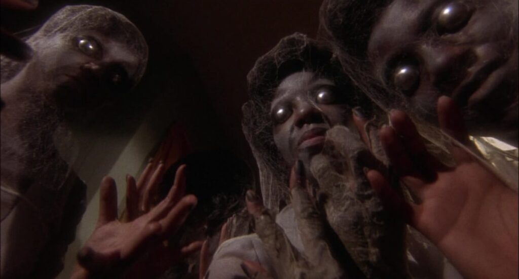 SUGAR HILL (1974) Diana “Sugar” Hill (Marki Bey) wants revenge for the murder of her boyfriend at the hands of violent crime lord Morgan (Robert Quarry) and his band of hoodlums. Instead of using a gun, Sugar seeks the help of a voodoo priestess (future Mother Jefferson, Zara Cully), who summons the Lord of the Dead (Don Pedro Colley) and his army of killer zombies. Sugar is subsequently transformed into an afro-sporting Bad Ass and, with zombies on hand, goes about dispatching Quarry’s goons. At times Sugar Hill‘s script feels stretched a bit too thin, with a subplot involving Sugar’s ex-beau, a cop, getting in the way of the film’s main attraction. But it’s hard not to enjoy the film’s supernatural ambience mixed with the justice-seeking kick-assery. It’s no Blacula, but Sugar Hill is a worthy entry in the seventies exploitation market. B–