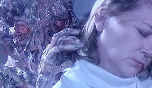 SHADOWZONE (1990) You have to admire a movie like Shadowzone. Here’s a film that makes absolutely no sense within the realms of its science-based story, yet it’s professionally made, features good acting and likable characters, and is entertaining enough to carry its largely preposterous story from beginning to end. Square-jawed NASA bigwig David Beecroft is given special access to a top-secret, government-funded research facility (dubbed “Project Shadowzone”) located inside an abandoned underground bunker, where scientists are doing advanced experiments in deep sleep and its dream states. Beecroft’s visit is the result of the death of one of the project’s volunteers—judging from their physiques, these male and female volunteers were apparently chosen based on their centerfold layouts. One of the subjects reaches beyond the normal dream state and into a Lovecraftian dimension filled with ugly, shapeshifting creatures. One of these beings eventually crosses over into the real world and forms the shapes of the characters’ worst nightmares, which for the lab’s in-house cook is a giant, mutated rat. Shadowzone resembles From Beyond in large parts and its story structure seems to have been modeled after Alien. That doesn’t prevent the movie from being highly enjoyable for what it is. Excellent make-up FX by Mark Shostrom (Evil Dead II, A Nightmare on Elm Street 3). B
