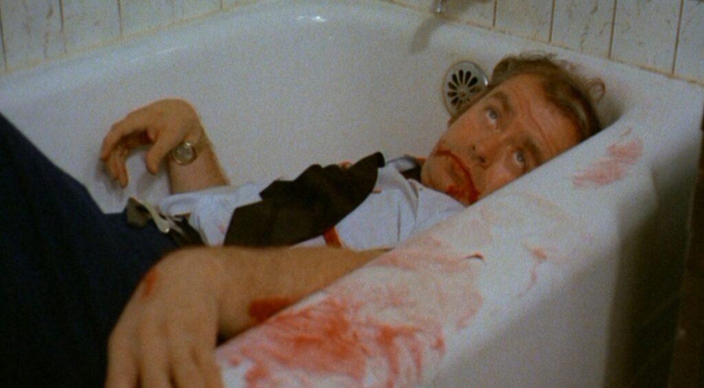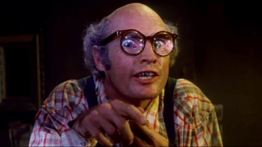 THE LOVE BUTCHER (1975) Caleb is a chrome-domed simpleton in Coke bottle glasses and overalls who speaks in a “yes’m” southern accent despite living in Southern California. He spends his days being berated by the women whose yards he attends to in an upscale suburban neighborhood (after Caleb asks his employer for a glass of water she calls him an irritation). Little do they know Caleb is a psychopath who takes on the personality of his “brother,” Lester, when he feels unjustly treated by society. A suave ladies’ man, Lester seduces the women who’ve treated Caleb like garbage and ultimately takes a knife/shears/pitchfork to them. Sort of the slasher movie version of Ethan Hunt, Caleb/Lester (both played by James Lemp) takes on disguises in order to infiltrate the homes of his victims. As if performing an overzealous theater pantomime, Lemp’s acting choices are often so hysterically overwrought the movie becomes almost mesmerizing in its awfulness. And Lemp is probably the best thing about the film! The rest of the story is filled with a typically dry police/newspaper investigation of the murders, in which the hard-boiled police captain and the overworked reporter scream their lines at each other until the veins in their foreheads nearly burst. The Love Butcher is either a misanthropic commentary on the seventies, an anti-feminist story, or a spoof of both. Either way, the viewer loses. C–
