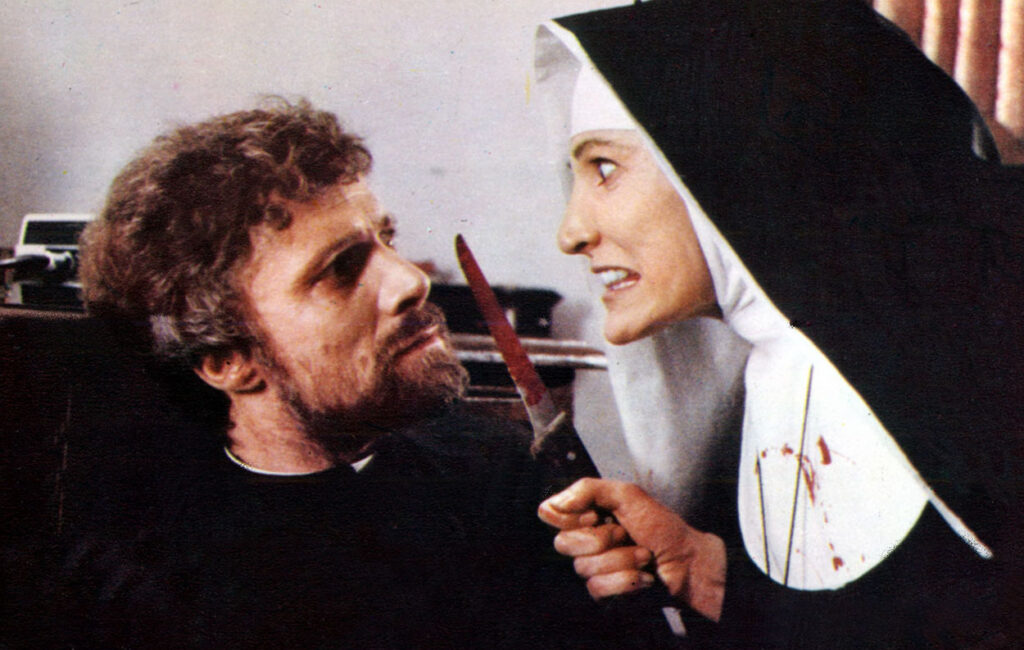 THE OTHER HELL (1981) A knife-happy nun dissects a fellow sister in an underground laboratory and removes her victim’s uterus. In the adjacent convent, a Bible erupts in flames and stigmata appears on a nun before she convulses and dies. A freethinking priest (Carlo De Mejo), who dismisses Satan, is sent to investigate and discovers a history of diabolical happenings within the convent. All of this is the product of black magic conjured by a demented Abbess (Franca Stoppi) who years earlier gave birth to a deformed child—the product of an unholy union with the Devil. More incomprehensible, exploitative nonsense made in Italy by unimaginative individuals who’ve seen The Exorcist. The sight of a priest’s charred head in a tabernacle is the only original moment in an otherwise disparagingly witless movie. F (Currently available on YouTube.)
