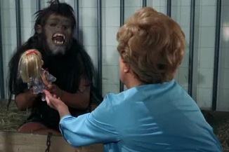 TROG (1970) A team of cave explorers in the British countryside discover a living troglodyte in the form of a prehistoric man/ape creature. “Trog” kills one of the explorers and wounds another, prompting their scientist colleague, Dr. Brockton (Joan Crawford), to capture the beast and bring it back to civilization. This causes a media frenzy in the nearby town in the form of disbelieving journalists and a hot-headed, Bible-quoting big wig named Murdock (Michael Gough) whose plan to build a hotel in the area is thwarted by Trog’s presence. Trog learns to speak (briefly), play with a ball, and makes goo-goo eyes at Brockton’s granddaughter (Kim Braden). Murdock trashes Brockton’s lab and sets Trog free into the world, where the misunderstood manimal goes on a killing spree—which includes hanging a butcher on his own meathook. Campy and ridiculous, but entertaining in spite of itself. B– (Currently streaming on Prime.)