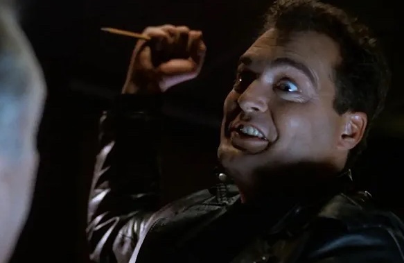 PSYCHO COP (1989) One-dimensional people are stalked by a one-dimensional killer in this one-dimensional movie. An annoying couple lost on a back road are dispatched by a maniac (Bobby Ray Shafer) in a policeman’s uniform. When he’s not telling his victims bad jokes pre-kill, the psycho cop is tracing pentagrams in the dirt. Even more annoying characters are introduced in the form of partying douchebags that Shafer follows to a remote house. The woods gives the killer the perfect opportunity to hide and watch his prey drink beer, whine, and act like general nincompoops. There’s a caretaker—looking like he just stepped out of a gay porno—who claims the county stationed him at the house for security reasons, but he’s whacked in the head with an ax before we’re given anymore exposition. Psycho Cop is filled with long stretches of boredom as we’re forced to watch characters endlessly complain, about anything. When someone is finally bumped off, their death is unimaginative and bloodless. Why is the psycho cop doing all of this? Because he’s a Devil-worshipping serial killer who’s escaped from a mental hospital, or something. Who cares—the movie stinks. F (Currently streaming on Plex.)