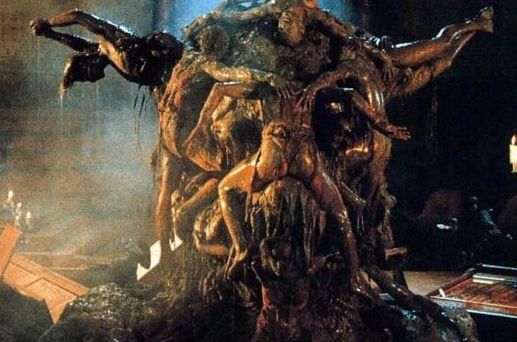 THE CHURCH (1989) The restoration of a large cathedral uncovers the sinister truth behind the place’s nefarious history. Built over the mass grave of murdered 12th century villagers by a superstitious sect known as the Teutonic Order, the church becomes infused with evil powers and traps a group of employees and tourists within its structure. When a librarian (Tomas Arana) breaks open a seal in the basement, he unleashes a demonic force which subsequently possesses and turns him into a moody dope who incessantly pounds the “6” on his typewriter. Arana infects more people, turning them into demons until the place becomes a regular monster jamboree. One of the characters suffering from demonitis takes his own life by impaling himself on a jackhammer. Random characters try to find a way out through the labyrinthine dwelling but meet gruesome ends, including an insufferable bonehead who digs through to the underground transit system only to get her face splattered across the windshield of a train. In a rip-off of Rosemary’s Baby, a woman (Barbara Cupisti) lies naked on an altar surrounded by Satan-worshippers and is raped by the Devil himself. What could all of this mean? Why it’s yet another stylish but empty supernatural melodrama from the reigning king of Italian supernatural melodrama, Michael Soavi, this time aided by producer/co-writer Dario Argento. Good special effects and use of sound, but in the end The Church feels like just another Demons/Evil Dead clone. C–