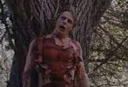 HUNTER’S BLOOD (1986) Yet another city-folk-versus-redneck shocker—a subgenre practically unto its own—made in the wake of John Boorman’s Deliverance (1972). What separates Hunter’s Blood from the rest of the pack is the fact it’s actually quite good. Upper-class friends on a hunting expedition in backwoods Arkansas run into a family of demented poachers who’ve been illegally selling venison to a meatpacking company. The toothless natives don’t take kindly to outsiders messing around their business and pull out their shotguns and buck knives to secure the continuation of the family business. Macho Clu Gulager, pack leader of the civilized group, threatens the philistine woodsmen with violence and escalates the already turbulent waters by declaring all-out war. The bloodshed runs thick and fast, with one poor victim getting skinned and strung up a tree naked. Another is found decapitated in the swamps. The bumpkins’ territory is eventually overcome when mild-mannered physician Sam Bottoms turns “savage” by killing several forest people with his bare hands. Gory, funny, and intense. B