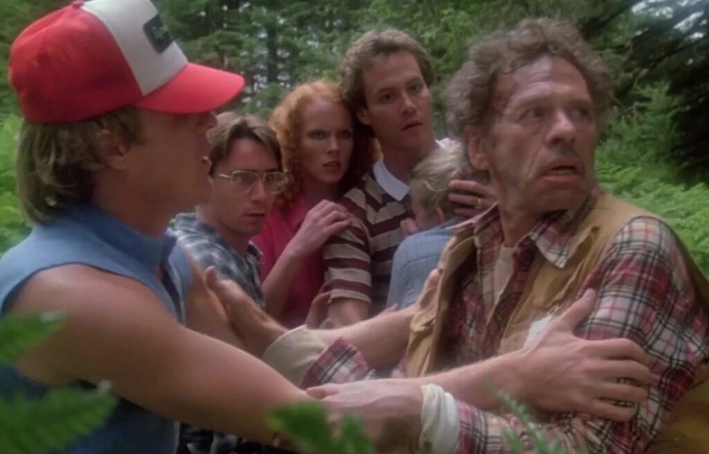 JUST BEFORE DAWN (1981) Backpackers venturing into deep Oregon wilderness are stalked by a machete-wielding madman and his equally demented twin brother. The friends turn a blind eye to hostile locals and signs of impending danger and—like the pompous city folk of Deliverance—move forward with their camping until they suffer a fate worse than death. The massacre begins with a hunter getting impaled through the crotch (in an especially gruesome moment, the serrated blade comes out the poor guy’s rear end). One of the newcomers is stabbed in the gut and left to bleed out while his friend is descended upon by the psychotic brothers in an intense scene. A mountain girl tries to help the remaining characters by flagging down a forest ranger (George Kennedy), but it’s the mild-mannered camper (Deborah Benson) who, in the midst of terror, transforms into a fighter and takes matters into her own hands, literally. Just Before Dawn contains the normal amount of stalk-n-slash cliches, but it’s too effectively made to write off as just another Friday the 13th clone. In terms of tone and atmosphere, the film actually has more in common with The Hills Have Eyes, and builds to a genuinely unsettling ending. Foreign prints run 102 minutes. B