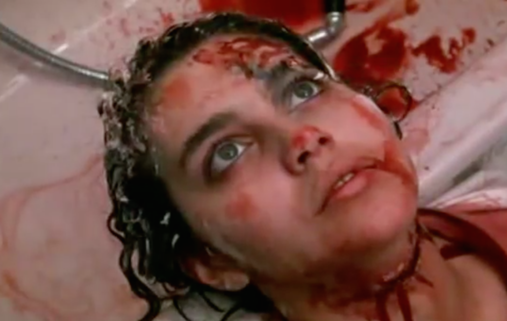 A BLADE IN THE DARK (1983) (AKA: House of the Dark Staircase) A novice composer, Bruno (Andrea Occhipinti), writing the score to a new horror movie is thrust into a real life nightmare when a woman is killed by a slasher outside his villa. The body vanishes but like David Hemmings in Blow-Up, Bruno becomes obsessed with the mystery and believes clues to the identity of the killer can be found in the last reel of the horror film he’s working on. A second woman is murdered by the maniac in the bathroom—the bathtub is painted red when her throat is sliced open with a carving knife—and the body again disappears. This Italian, Hitchcock-influenced chiller is accentuated by its Argento-like style but often feels padded in the story department, most likely the result of the movie’s conception as a television miniseries before it was denied by the censors and released theatrically. As it is, A Blade in the Dark is a watchable if routine thriller that should please giallo aficionados and gore fans alike. B–