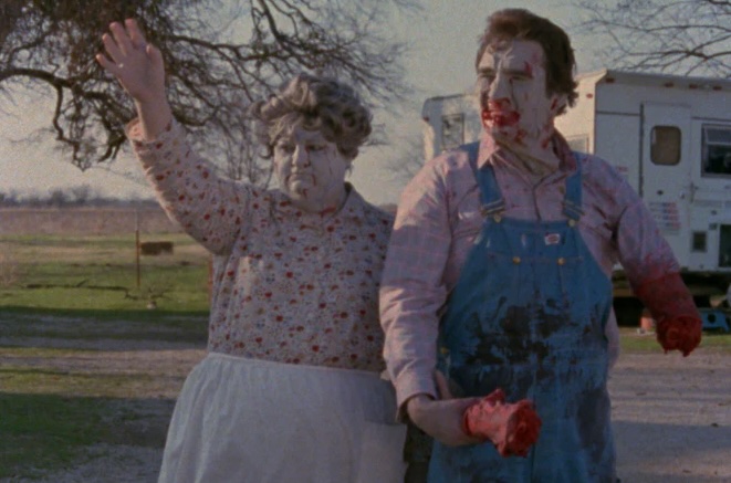 BLOODSUCKERS FROM OUTER SPACE (1984) A farming community is invaded by an alien presence that turns the residents into bloodsucking mutants. The police are baffled when bodies start piling up, drained of blood. A hillbilly called Buford thinks “Satan-worshipping homos” are responsible, but a more intelligent perspective is sought by a wannabe photojournalist (Thom Meyers). Scientists try to study a captured bloodsucker but that proves fruitless when the Army is called in and wishes to lay waste to the land with nukes. Meyers discovers some family members have become bloodsuckers—in self-defense he cuts off his uncle’s arm, which gushes blood from a stump that resembles ground beef. Meyers then turns into a regular Ash Williams from Evil Dead and uses a chainsaw to remove the head of a bloodsucker decked out in trucker’s cap and overalls. In what can only be a homage to Boris Sagal’s The Omega Man, a smart bloodsucker teaches the prophetic ways of inevitable doom for all mankind by promising divine intervention. If anything, Bloodsuckers from Outer Space proves to be an amusing send-up of Night of the Living Dead, made by people who have an idea or two in their heads. B–