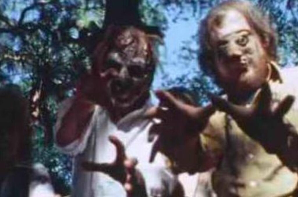 THE ALIEN DEAD (1980) The residents of Deep South swamp country are turned into cannibalistic ghouls after coming into contact with a crashed meteor. The first victims are a couple of twang-talkin’ gator poachers who are pulled into the water and resurface with their faces eaten off. A man chopping wood is ripped apart by a quartet of zombies; his wife later stumbles upon his top half being devoured by the cannibals. She’s bumped off in the movie’s most infamous scene, impaled with a three-pronged pitchfork—as four prongs come out her back. The redneck sheriff (Buster Crabbe) thinks it’s the work of a rogue gator, despite the fact there hasn’t been a gator sighting in weeks—because they’ve been eaten by the zombies! Former Flash Gordon Crabbe flubs his lines; bombshell Linda Lewis emerges from the swamp soaking wet and a few seconds later is bone-dry; several of the alien dead have mutated gray faces, yet their arms and hands retain a normal skin complexion; a victim laughs while being chomped on by a zombie. In other words, it’s a typical Fred Olen Ray production, which is atypical of most other filmmakers. Still, this is an enjoyable slack-jawed blunder that would pair nicely with the similar bargain basement production, Bloodeaters (1980). B–