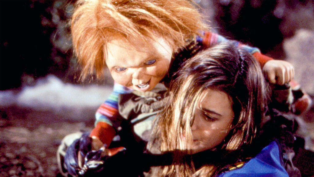 Child’s Play (1988) Serial killer Charles Lee Ray (a.k.a. the Lakeshore Strangler) is shot in a toy store by a detective — but before dying, he transfers his soul into a Good Guys doll using a voodoo spell. The doll makes its way to the home of little Andy Barclay and within 15 minutes, Chucky begins a spree of murder and terror. And of course, nobody believes Andy when he blames his doll. This is the best of the series. The cast is great. The endearing Catherine Hicks plays Andy’s frantic mom, Chris Sarandon is a disbelieving detective (until he learns otherwise), and Alex Vincent plays six-year-old Andy. As far as child actors go, Vincent isn’t show-bizzy at all. Some of his line deliveries are rough, but he feels like a real kid (and sort of a dumb one at that). It becomes very easy to worry about the squirt as danger unfolds.