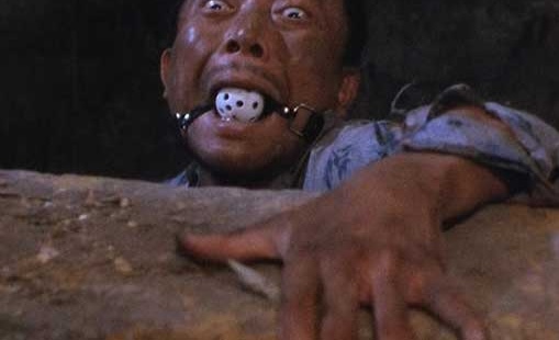 EVIL DEAD TRAP (1988) A Japanese television team investigating an alleged snuff video depicting a woman’s murder gets roped into the bloody games of a demented madman. The TV crew is lured to an abandoned military facility where they’re tormented by a hooded killer and his expertise of trapping people in elaborate torture devices—one victim is skewered with several metal spears after stumbling upon the decaying body of the woman from the snuff movie. After most of the cast is dispatched (with a couple of rapes thrown in for good measure), it’s revealed that the hooded figure is just a puppet orchestrated by the man’s Cronenbergesque, telekinetic fetal twin that rips out of the man’s body at the end—just like Samantha Eggar in The Brood. Don’t worry, I didn’t get it either. Evil Dead Trap is an inventive and gruesome tribute (in tone and style) to the films of Dario Argento and recommended for viewing—at least up until the ludicrous final 10 minutes. B–