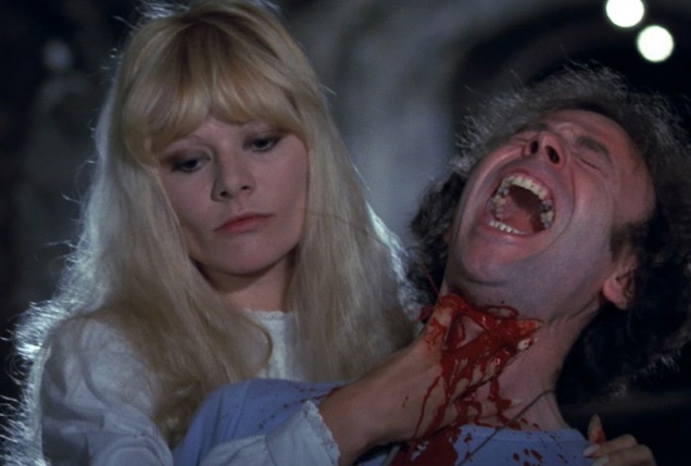 DARK PLACES (1974) Dr. Edward Foster (Robert Hardy) inherits dusty old Marr’s Grove (along with a stash of hidden cash) from his deceased patient, unaware of the place’s nefarious history. Foster’s search for the money is bamboozled by a local man (Christopher Lee) and his sister (Joan Collins) who’ve been after the lost loot for years. In between searching for treasure and bedding Collins, Foster is consumed by the place’s dark past and slowly transforms into the mansion’s original owner, Andrew Marr, and sees in visions Marr murdering his children after discovering they had dispatched their lustful nanny. Foster goes on a killing spree before the police burst in and save the day. Good acting from a robust cast, but the film is often too sluggishly paced to be exciting. C+
