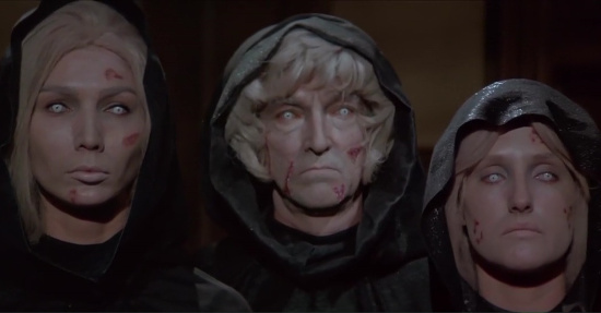 THE OMEGA MAN (1971) d: Boris Sagal. c: Charlton Heston, Anthony Zerbe, Rosalind Cash, Paul Koslo, Eric Laneuville. Thoughtful adaptation of the Richard Matheson book, I Am Legend, about Dr. Neville (Heston), a survivor in a post-apocalyptic world. Biological warfare has killed most of humanity and left the rest as light-sensitive mutants who see Neville, and other potential survivors, as the enemy. Part gothic horror, part sci-fi adventure, Omega Man replaces Matheson’s vampires with talking, intelligent monsters and in doing so creates a world that doesn’t question why bad things happen, but why we allowed it, eventually realizing that humans are humanity’s worst enemy. Although somewhat dated in tone, this is still very enjoyable and often exciting. The film was fairly transgressive for its time in its portrayal of an interracial relationship between Heston and Cash, especially in such a high-profile studio film. Worth a look if the 2007 Will Smith version (or the 1964 Vincent Price version) is not your cup of tea. B