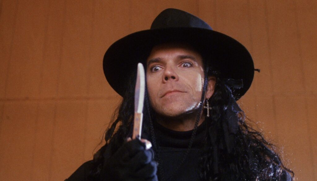 THE AMERICAN SCREAM (1988) d: Mitchell Linden. c: Matt Borlenghi, Ponz Maar, Kevin Kaye, Jennifer Darling, Riley Weston, Jeane Sapienza, Blackie Dammett. An awkward but totally unique and enjoyable horror satire of the T&A comedies of the 1980s – especially the National Lampoon films – about a dopey family spending vacation at Wilson Creek, a small country town that seems to be filled with weirdos, hedonists, and killers. While the teens are constantly bombarded by crazy shenanigans, the bubbly parents are too busy wrapped in their own stupidity to notice any wrongdoings, especially Dad (Matt Frewer lookalike Maar), who’s a cross between Homer Simpson and Clark Griswald. The kids eventually discover the town is strangely lacking young people and go undercover as adults to find out what’s happening. There isn’t much of a plot – if you go into this film looking for logic you’ll be disappointed – but the film is more about the fundamentally whacky characters and insidiously oddball touches, including a John Waters-esque scene where a couple accidentally kill their baby and barbecue it. If that’s not your cup of tea, then The American Scream is definitely not for you. B