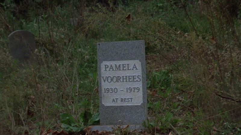 Mrs. Voorhees is literally buried by the side of the road, with a nice little headstone which reads “Pamela Voorhees 1939-1979, At Rest.” Who came up with that inscription? Who paid for the funeral? Did Mr. Voorhees write a check? There must be a Mr. Voorhees, after all… More on him in a movie or four. And for you trivia fans, this is the first official mention of Pamela’s first name.