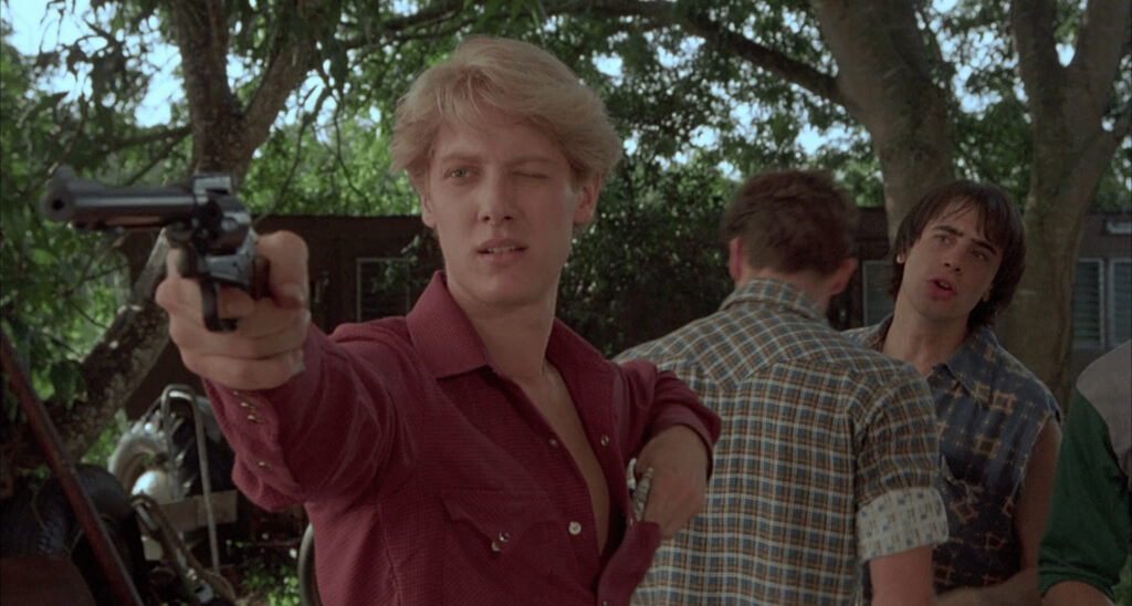 THE NEW KIDS (1985) After their military parents are killed in a car crash, teen siblings Loren (Shannon Presby) and Abby (Lori Loughlin) move to Florida and are immediately beset by a gang of psychopathic bullies. After Abby repeatedly ignores the romantic advances of the pack’s leader (James Spader), he and his friends decide to make her and her brother’s life hell, that is until Abby and Loren fight back. Friday the 13th‘s Sean S. Cunningham directs this slick thriller that works, mostly, thanks to a good cast and some genuine suspense. It gets a bit too melodramatic here and there, but at just 89 minutes it gets by on pure 80’s charm. B