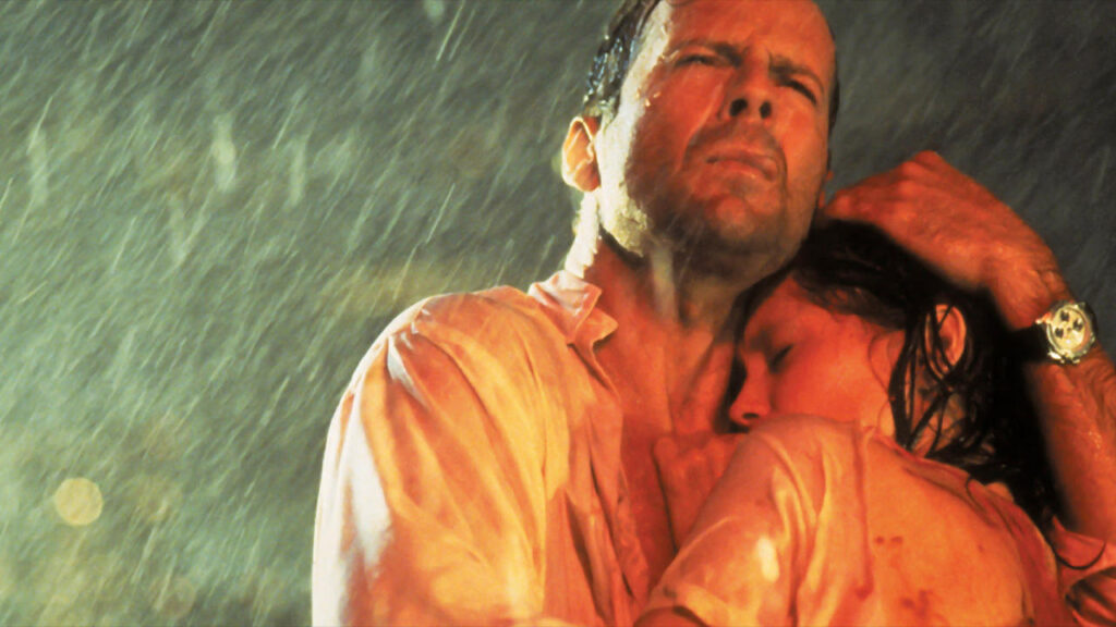 COLOR OF NIGHT (1994) A big-budget slasher whodunit dressed up as a glossy erotic thriller about arrogant New York psychiatrist Bill Capa (Bruce Willis), who, after the suicidal death of a patient, goes to Los Angeles to spend time with Bob Moore (Scott Bakula), a college friend and fellow shrink. After Moore is knifed to death in his office by a hooded killer, Capa must try to figure out who the killer is (while avoiding the assassin’s blade) while simultaneously having lots of sex with a mysterious beauty (Jane March). If you’ve seen one or more of these films you can see the twist coming a mile away. The screenplay – by erotic thriller expert, Matthew Chapman (Consenting Adults) – is littered with too many red herrings and double-crosses, with the plot usually circling back to a lengthy sex scene between Willis and March. That said, Color of Night is often very entertaining, having the ostentatious, sleazy feel of a giallo, and at times attaining a so-bad-it’s-good quality. Willis does a good job at shedding his John McClane persona (as well as his clothes, especially in the unrated director’s cut), while March is cold but sympathetic. The supporting cast, including Brad Dourif, Leslie Ann Warren, Kevin J. O’Conner, and Lance Henriksen, is excellent. Given the right audience, this could become a trashy cult classic. B