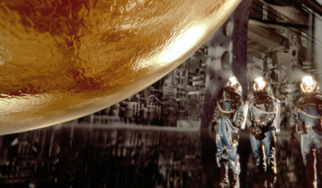 SPHERE (1998) A well-intended, but not totally successful, adaptation of the terrific Michael Crichton novel that’s actually much better than its reputation suggests. A team of scientists and doctors are assembled to explore a buried spacecraft discovered at the bottom of the ocean, inside of which is a large, floating orb that has the power to make your worst fears a reality. While it lacks the complexity and suspense of the book (not to mention a fantastic sequence involving a giant squid), Barry Levinson’s film is smart enough to move at a fast pace and creates an environment of paranoia and tension. The cast is good – Samuel L. Jackson is excellent – but the characters often come off as cold and unsympathetic, especially Sharon Stone’s pill-popping marine biologist. As with Outbreak, Dustin Hoffman makes for a warm and likable hero. First-rate production values and effective use of underwater photography. B