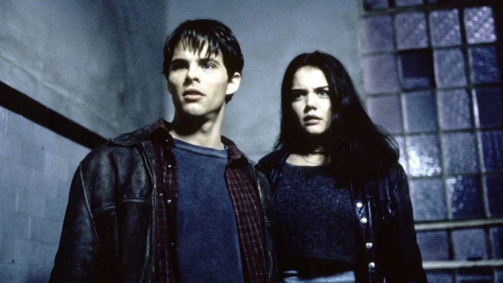DISTURBING BEHAVIOR (1998) After the death of his brother, Steve (James Marsden) and his family move to the quiet seaside town of Cradle Bay, where the high school is lorded over by a group of letterman jacket-wearing goodie two-shoes called the Blue Ribbons. Viewed by the burnouts and skaters as just an uncool club for the privileged, Steve, and new friends, Gavin (Nick Stahl) and Rachel (Katie Holmes), realize the Ribbons were former maladjusted misfits who’ve been implanted with microchips, reprogrammed by a Dr. Caldicott (Bruce Greenwood), and transformed into outstanding citizens. But, when the robo-teens get sexually aroused, their wires short circuit, turning them into uncontrollable psychopaths. A sort-of cross between The Stepford Wives and the terrific 1981 Australian chiller, Dead Kids, this was a victim of massive pre-release cutting and re-editing by distributor MGM, resulting in a lesser version of what was intended. This is still a good little flick with likable characters and a quick pace by director David Nutter. William Sadler steals the show in a scene-chewing performance as the school’s janitor who speaks in a thick Maine accent. B