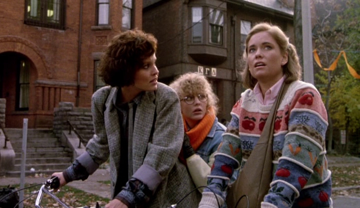 KILLER PARTY (1986) Sorority pledging is literal hell for a trio of friends in this spirited romp that feels like an early companion piece to the equally humorous Pledge Night. College freshmen Phoebe (Elaine Wilkes), Vivia (Sherry Willis-Burch), and Jennifer (Joanna Johnson) are forced into setting up pranks and practical jokes for their pledging sorority’s annual April Fool’s Day costume party, conveniently being held at the campus haunted house, where years earlier a frat brother was accidentally killed. Fun and games turn to horror when Jennifer becomes possessed by the malevolent spirit of said dead bro and begins picking off her fellow classmates one-by-one. Although unfortunately saddled with a sluggish first half, Killer Party is never dull and kicks into gear during its creative and fun climax. The cast is good, and the tipping-of-the-hat to the slasher genre a welcome addition to the screenplay, written by Friday the 13th: The Final Chapter‘s Barney Cohen. The pre-credits sequence parodying Michael Jackson’s Thriller is charming. B–