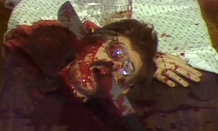 THE BURNING MOON (1992) It’s always disheartening when you sit down to watch a movie that has notoriety and, by the end, you find yourself more bored than shocked – a good example is A Serbian Film. This is also the case with The Burning Moon, an infamous, shot-on-video German splatter flick that’s just a 90-minute geek show of outrageous but very low-budget gore FX. A cretinous teenage drug addict tells his kid sister two violent bedtime stories: “Julia’s Love” depicts a young woman and her family being butchered by an escaped mental patient; “The Purity” has a psychopathic priest who believes rape and murder cleanses the soul and sets his victims free. The makeup ranges from mediocre to piss-poor, done by people who don’t seem to understand human anatomy. Despite the low-grade gore, whenever it’s not on screen the movie is super lame, with too many instances of dull characters performing mundane daily activities, like emptying a dishwasher. The film crescendos during a hallucination depicting hell, a nearly 10-minute sequence in which a lot of fake blood and body parts are thrown around, including a bit where a man is split in half when his legs are pulled apart. What filmmaker Olaf Ittenbach doesn’t understand is if the viewer doesn’t believe anything that’s unfolding in front of them, all the decapitated heads in the world won’t amount to a hill of beans. D–
